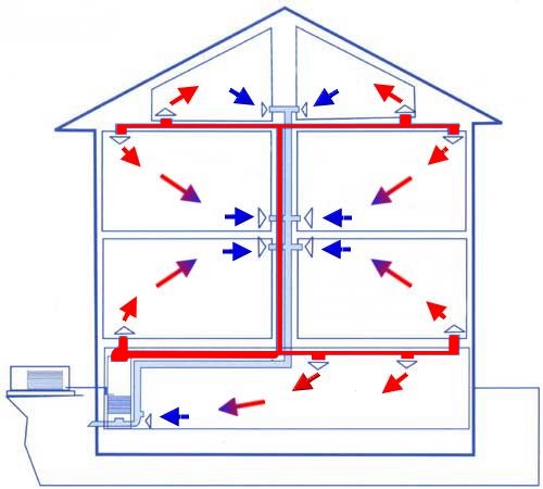 Схема розподілу повітропроводів в приватному будинку