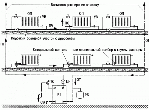 Схеми розводки труб для систем водяного опалення